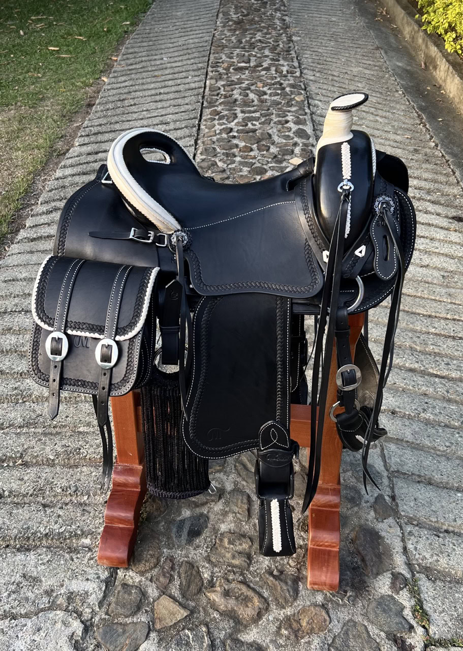 Esta montura ha sido diseñada pensando en la funcionalidad y la comodidad para cabalgatas exigentes y recorridos de montaña. Su estructura robusta brinda estabilidad y resistencia, permitiendo un desempeño óptimo en terrenos desafiantes. Uno de sus mayores atributos son sus alforjas amplias y llamativas, creadas para ofrecer la máxima practicidad en cada trayecto. Su capacidad permite llevar chaquetas, botellas de hidratación y otros elementos esenciales, asegurando que el jinete tenga todo lo necesario a la mano. Una montura que combina presencia, funcionalidad y confort en cada detalle.