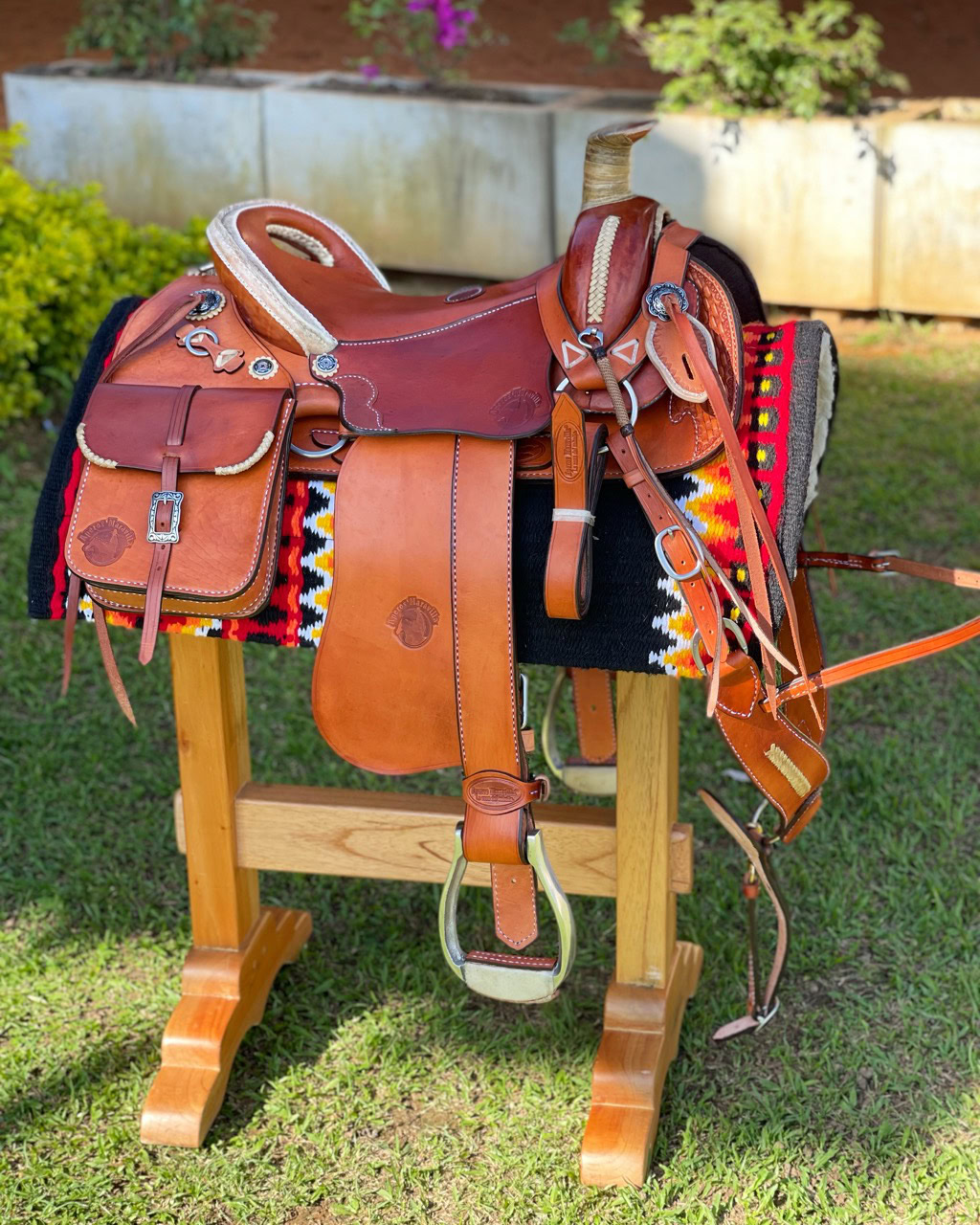Maravilla ha supervisado cada detalle en la fabricación de esta montura, desde la creación del fuste hasta su ensamblaje final. Su sistema de sunchado, reforzado con platinas de acero, garantiza la resistencia necesaria para ofrecer una verdadera silla de doble propósito: perfecta para cabalgatas, pero también confiable en el trabajo con ganado. El retobado estructural refuerza su durabilidad, permitiendo que, en caso de una urgencia en la finca, brinde la seguridad y estabilidad necesarias para amarrar y sujetar el ganado con la soga. Una silla versátil, diseñada para jinetes que buscan elegancia sin renunciar a la funcionalidad.